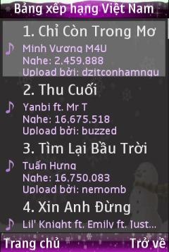 - Có thể xem ngay bảng xếp hạng nhạc Việt, nhạc ngoại...đang hot hiện nay tại mục "Xếp Hạng".